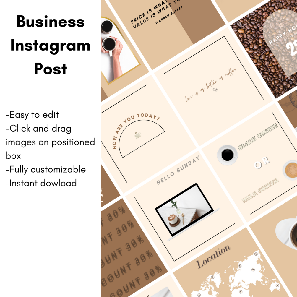 24 Coffee Instagram Canva Post Templates | Instagram Story Templates | Instagram Marketing Templates